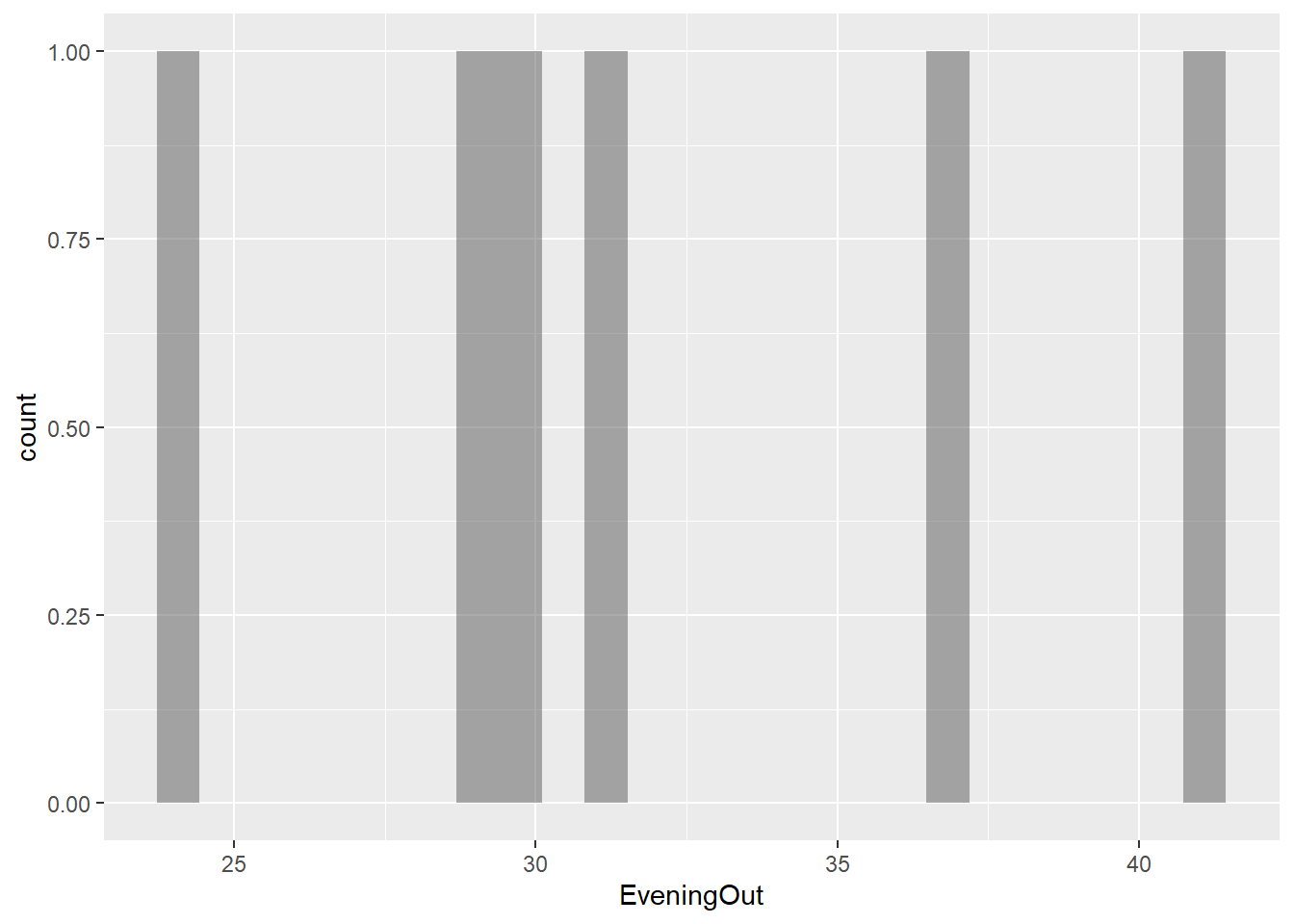 gf_histogram(~EveningOut, data = gifts_age)