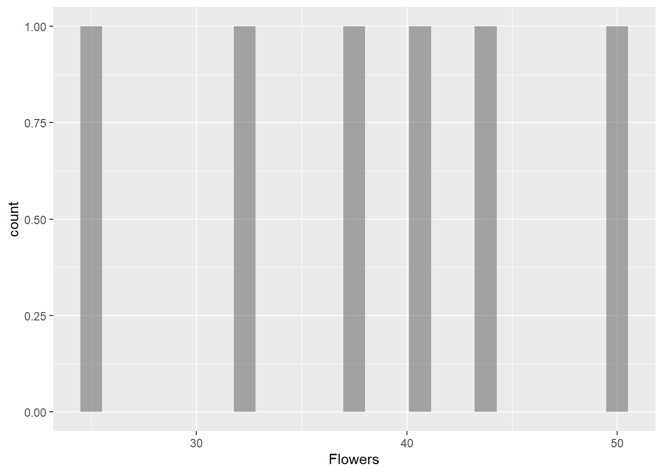 gf_histogram(~Flowers, data = gifts_age)
