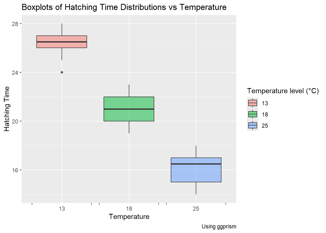 frogs_orig %>%pivot_longer( .,cols =starts_with("Temperature"),cols_vary ="fastest",# new in pivot_longernames_to ="Temp",values_to ="Time" ) %>%drop_na() %>%##separate_wider_regex(cols = Temp,# knock off the unnecessary "Temperature" word# Just keep the digits thereafterpatterns =c("Temperature", TempFac ="\\d+"),cols_remove =TRUE ) %>%# Convert Temp into TempFac, a 3-level factormutate(TempFac =factor(x = TempFac,levels =c(13, 18, 25),labels =c("13", "18", "25") )) %>%rename("Id"=`Frogspawn sample id`) -> frogs_longfrogs_long